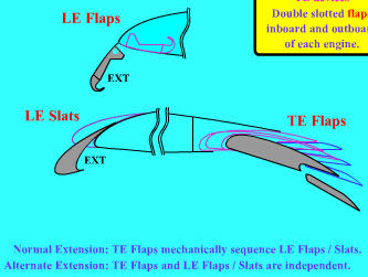 Practical 'technical knowledge hints' are also given in various windows. For example, within the Flaps / Slats window you will see "Normal Extension: TE Flaps mechanically sequences the LE Flaps / Slats". This is a reminder what triggers the movement of the LE Flaps / Slats when using the normal flap system.